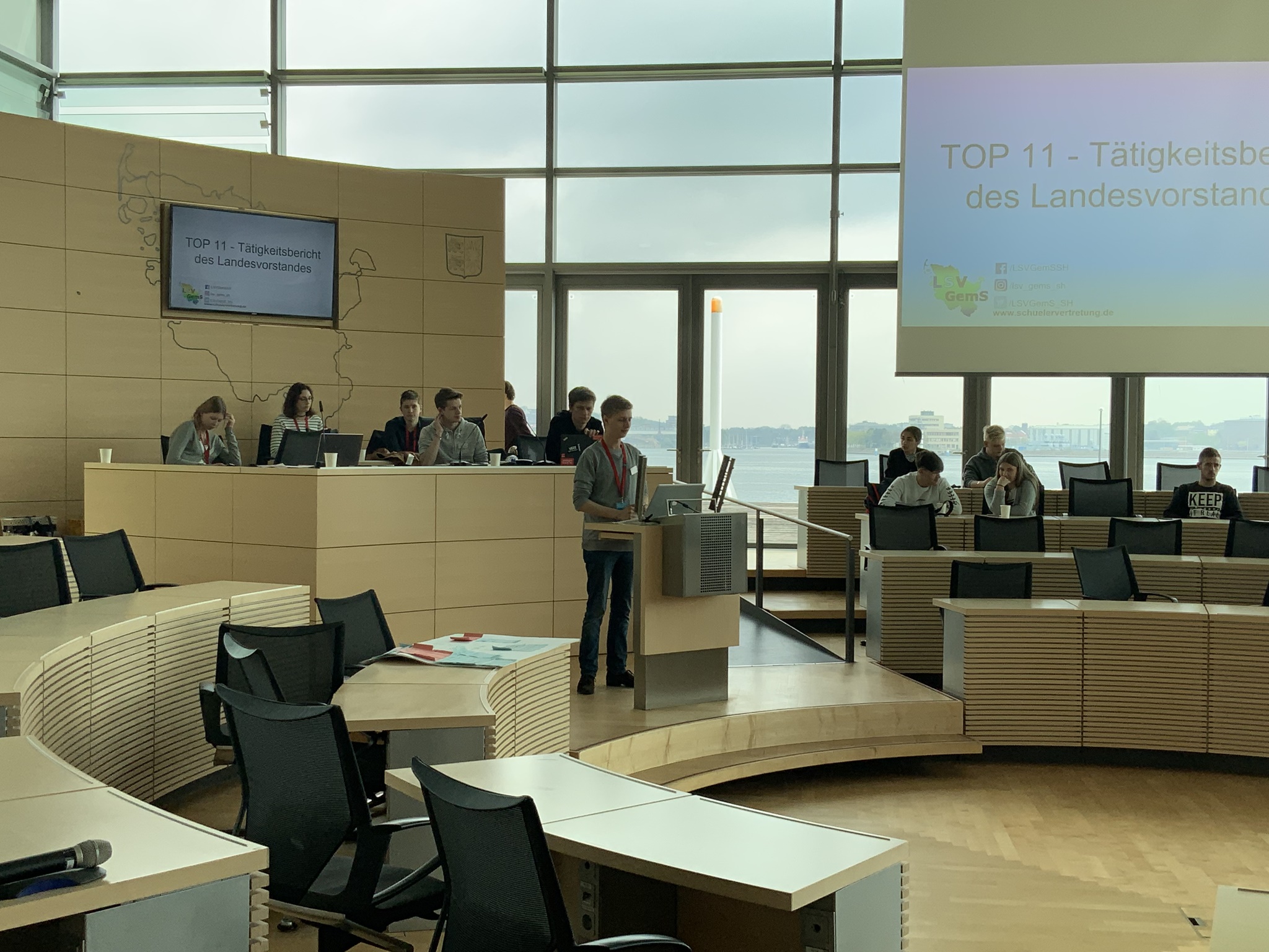 Erstmals in der Geschichte der Schülervertretung der Heinrich-Heine-Gemeinschaftsschule hat ein Mitglied unserer SV zudem einen Vorstandsposten inne. Jan Philip Benckert ist nicht nur Delegierter unserer Schüler im Landesschülerparlament, er ist stellv. Landesvorsitzender der Schülervertretung der Gemeinschaftsschulen. Auf Landesebene kämpft er besonders in den Bereichen Digitalisierung, Berufsorientierung und Oberstufe. „Was man ruhig erwähnen darf: Dass wir zu einen der besten Schülervertretungen des Landes - und das meint ich ganz im Ernst - gehören, das macht uns natürlich sehr stolz.“