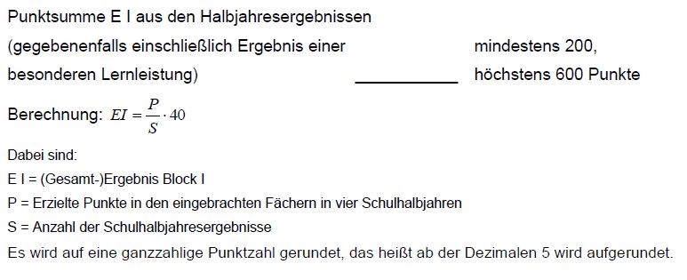 In Block I einzubringen sind mindestens die Ergebnisse der Qualifikationsphase aus vier Schulhalbjahren:
