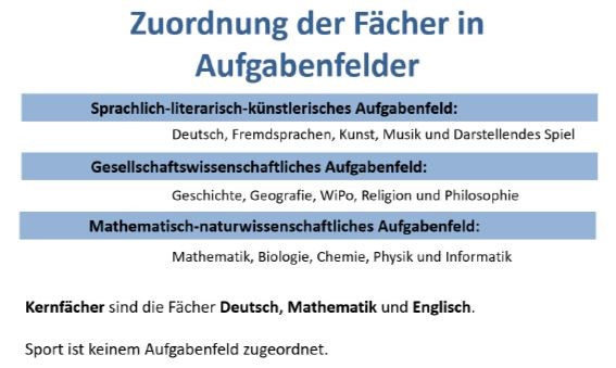 Aus jedem Aufgabenfeld muss mindestens ein Fach Prüfungsfach gewählt werden.