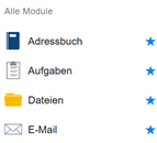 Klickst du auf den Stift hinter „Schnellzugriff“ öffnen sich alle Module. Hier kannst du durch Anklicken des „Sternes“ dir die für dich wichtigen Sachen in deiner Startseite als Favorit festlegen.