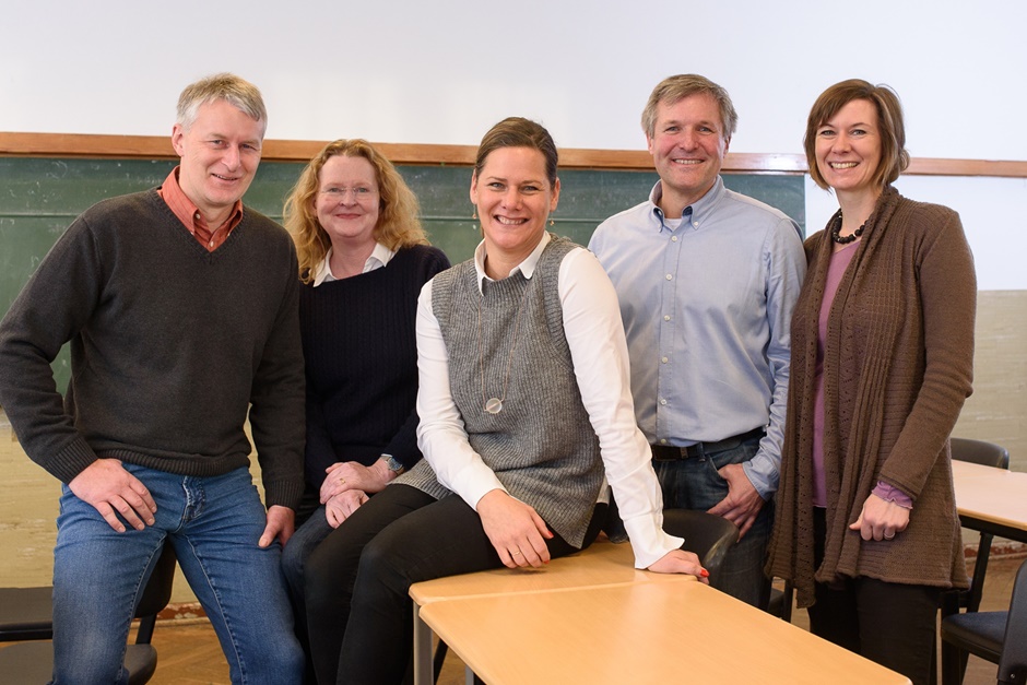 Stefan Sievers (Mittelstufenkoordinator, Berufsorientierung), Sabine Baum (Unterstufenkoordinatorin), Silke Cleve (Schulleiterin), Lars Grote (stellv. Schulleiter), Britta Schramm (Mittelstufenkoordinatorin, Abschlüsse)