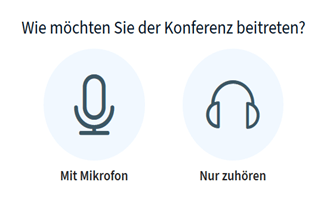 Nun wird dir die Frage gestellt, ob du mit einem Mikrofon oder mit Kopfhörern beitrittst.