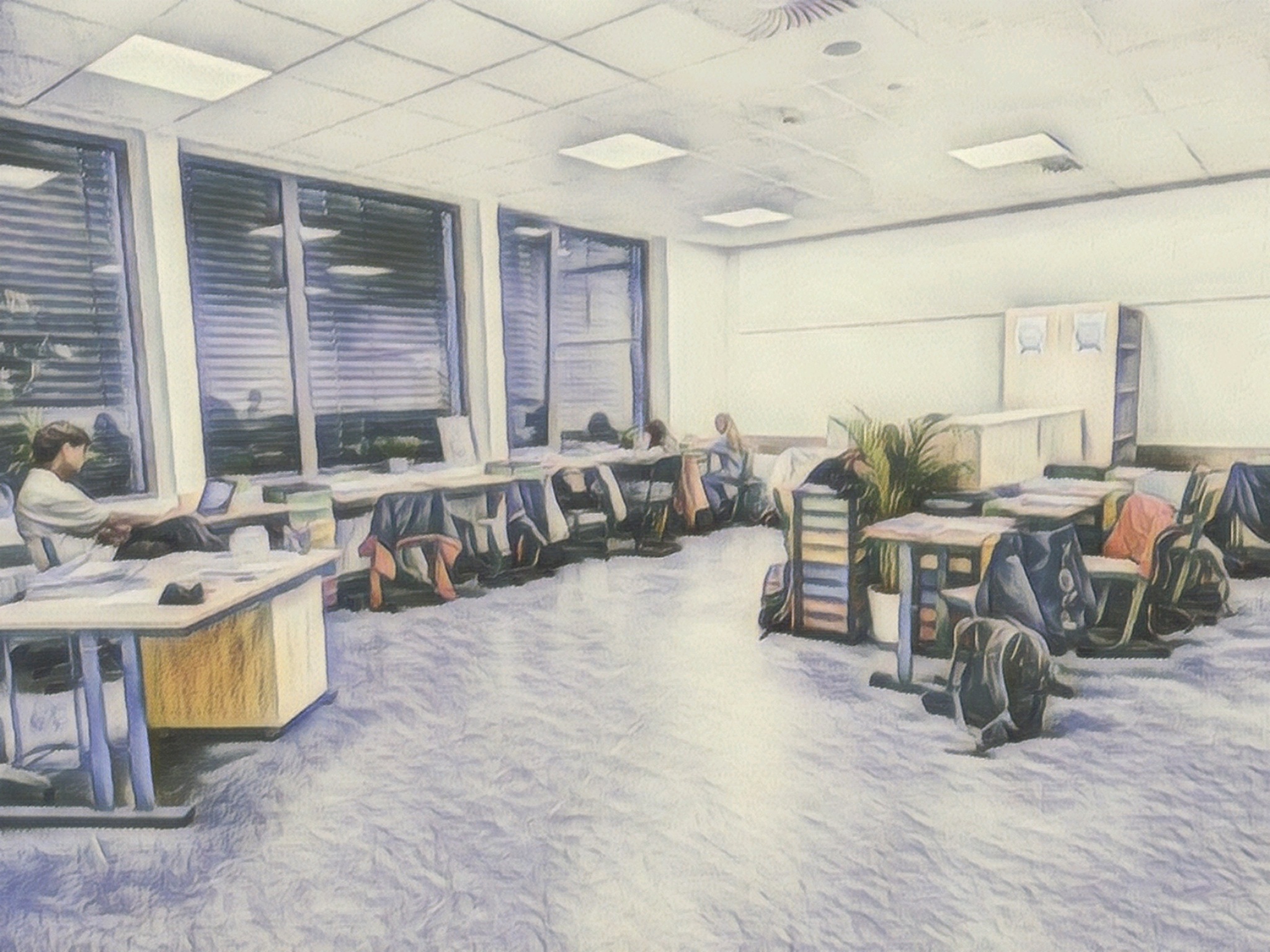Jeder kennt aus seiner eigenen Schulzeit noch das "U" oder die Bankreihen. Manchmal auch Tischgruppen. Im Lerndorf sitzen die SchülerInnen an Einzelplätzen mit dem Gesicht zum Fenster oder zu den Wänden. So soll in den Arbeitsphasen der Fokus auf das Material gelenkt werden. Den Arbeitsplatz können sich die SchülerInnen nach und nach eigenständig gestalten, bzw. einrichten. Jeweils 2 SchülerInnen teilen sich einen Rollcontainer für Materialien, wie Bücher oder Hefte.